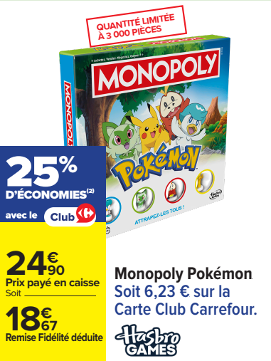- Monopoly Pokémon — 24,90 € → 12,44 € (−50%)