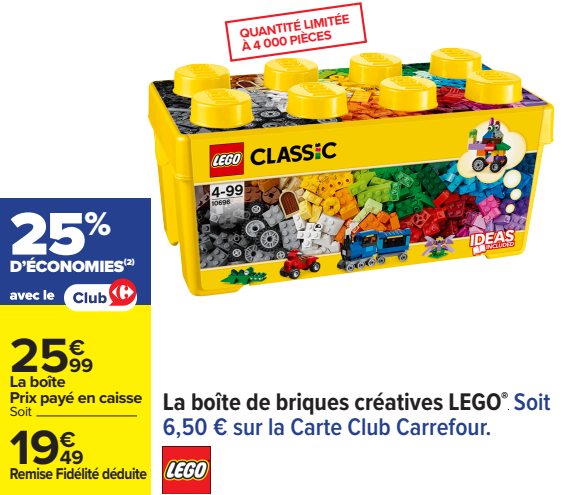 - Boîte de briques LEGO Classic — 25,99 € → 12,99 € (−50%)