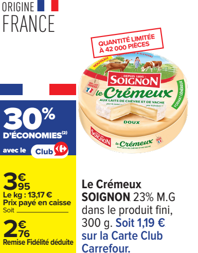 - Le Crémeux Soignon 300 g — 3,95 € → 1,57 € (−60%)