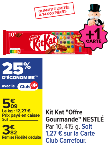 - KitKat “Offre Gourmande” 415 g — 5,09 € → 2,55 € (−50%)