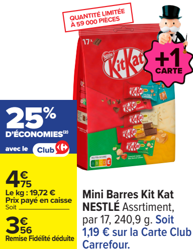 - Mini Barres KitKat 240 g — 4,75 € → 2,37 € (−50%)