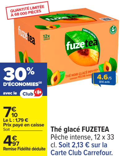 - Thé glacé Fuzetea 12×33 cl — 7,00 € → 2,84 € (−60%)