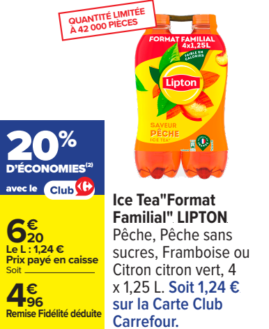 - Ice Tea Lipton 4×1,25 L — 6,20 € → 1,80 € (−71%)