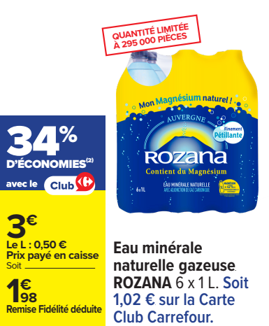 - Eau minérale Rozana 6×1 L — 3,00 € → 0.96 € (−68%)