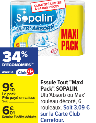 - Sopalin Maxi Pack (6 rouleaux) — 9,00 € → 3,00 € (−68%)