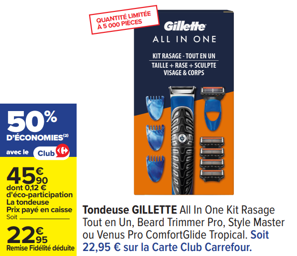 - Tondeuse Gillette All In One Kit — 45,90 € → 22,95 € (−50%)