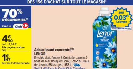 LENOR, plusieurs parfums, et surtout un coût final à… 0,03 € le lavage.