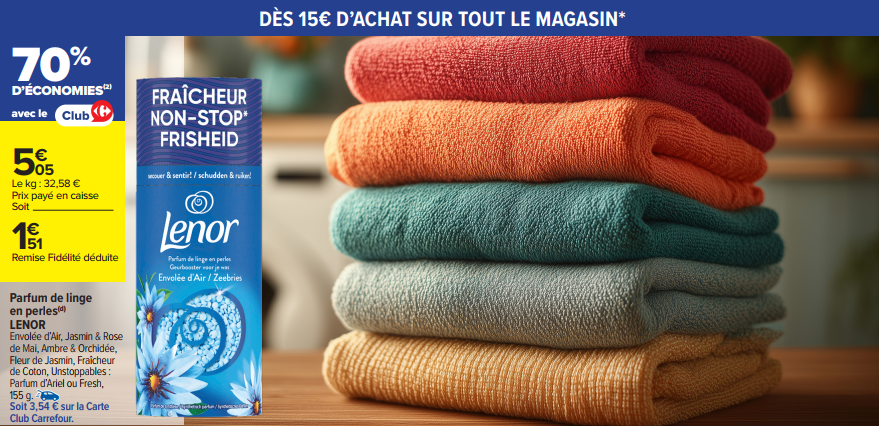 Carrefour Market vient clairement de ressortir la massue des grosses promos sur la lessive et l’adoucissant. Et quand je dis grosses… je parle de 70 à 80% d’économies, rien que ça 😱🔥