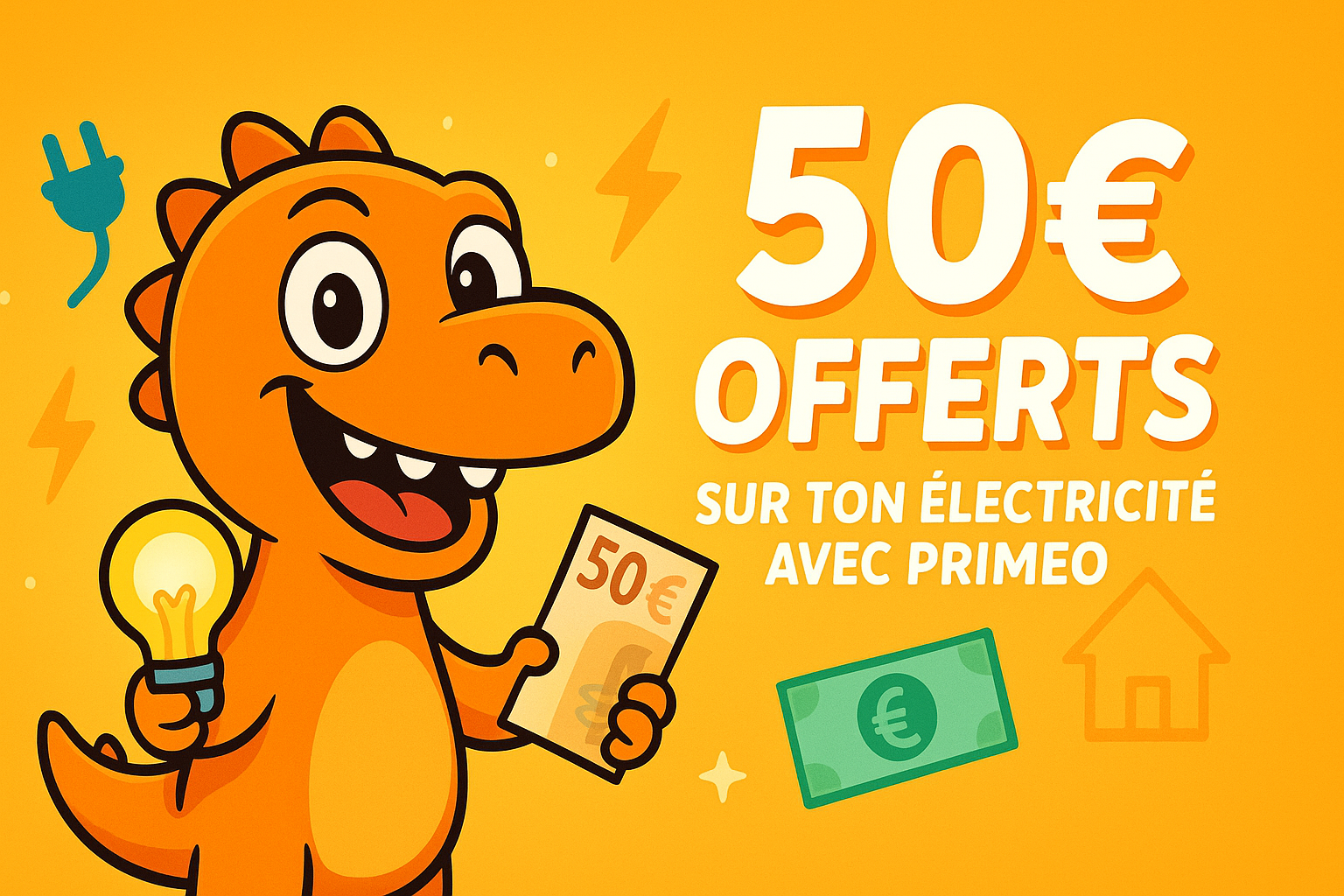50€ offerts sur ton électricité avec Primeo : le plan radinosaure