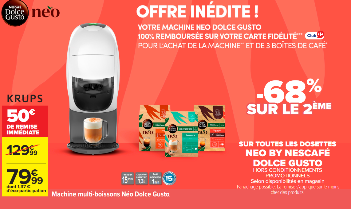 En parallèle, Carrefour balance aussi une réduc de -68 % sur le 2e pack de dosettes NEO 😍