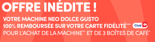 Machine NEO Dolce Gusto 100 % remboursée en cagnottage Carrefour