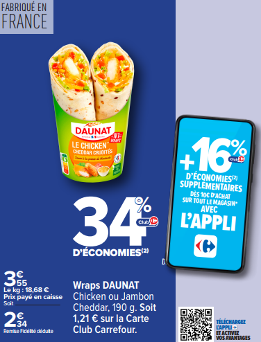 • 🌯 Wraps Daunat → 1,77 € (appli activée)