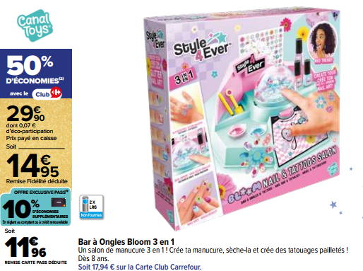 🧩 jouets à moitié prix, 💅 coffrets beauté bradés, 🍔 bouffe du quotidien en mode -50%, tondeuse pour barbe et 📱 des bonus à gratter dans l’appli !
