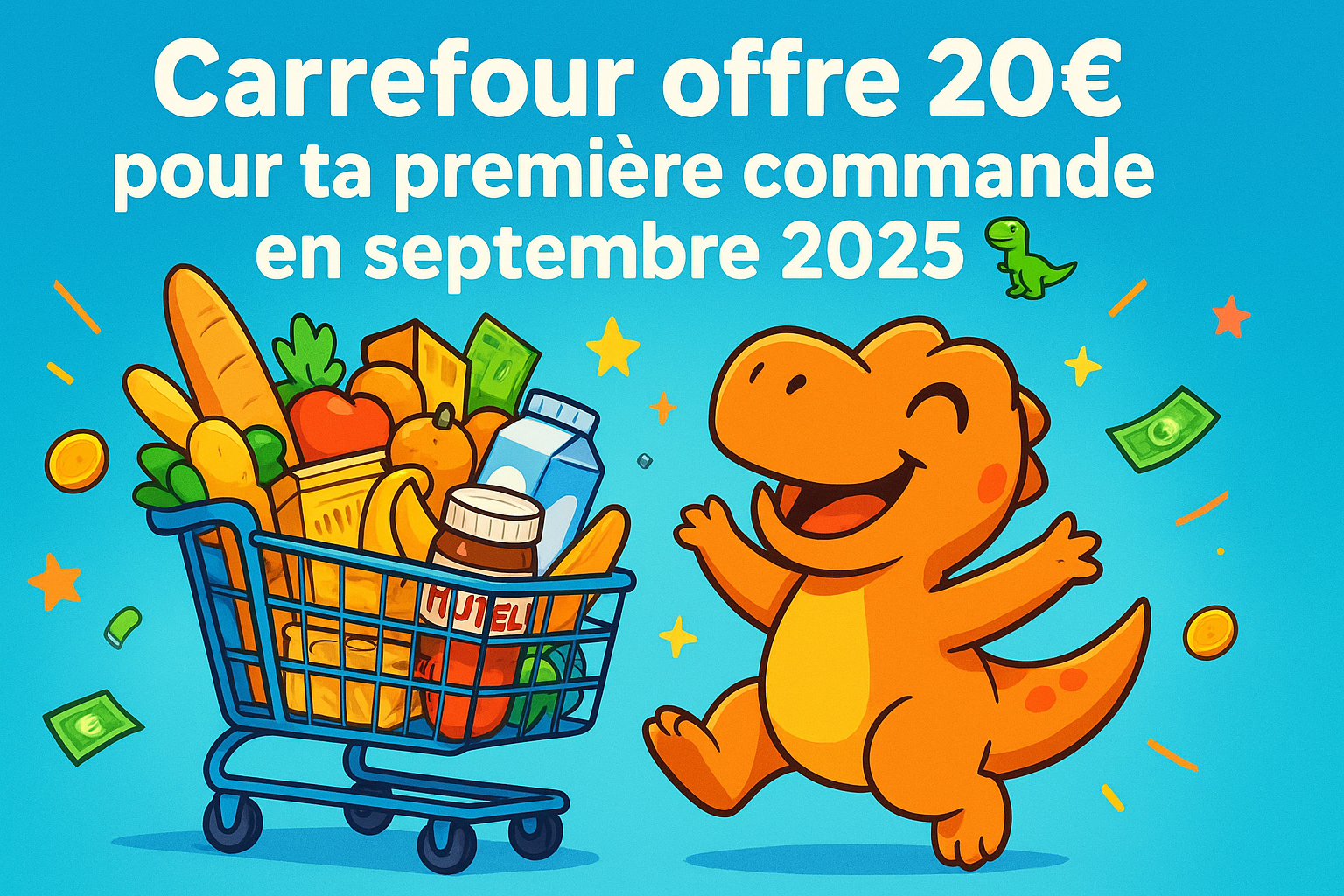 Carrefour offre 20€ pour ta première commande en septembre 2025 🦖