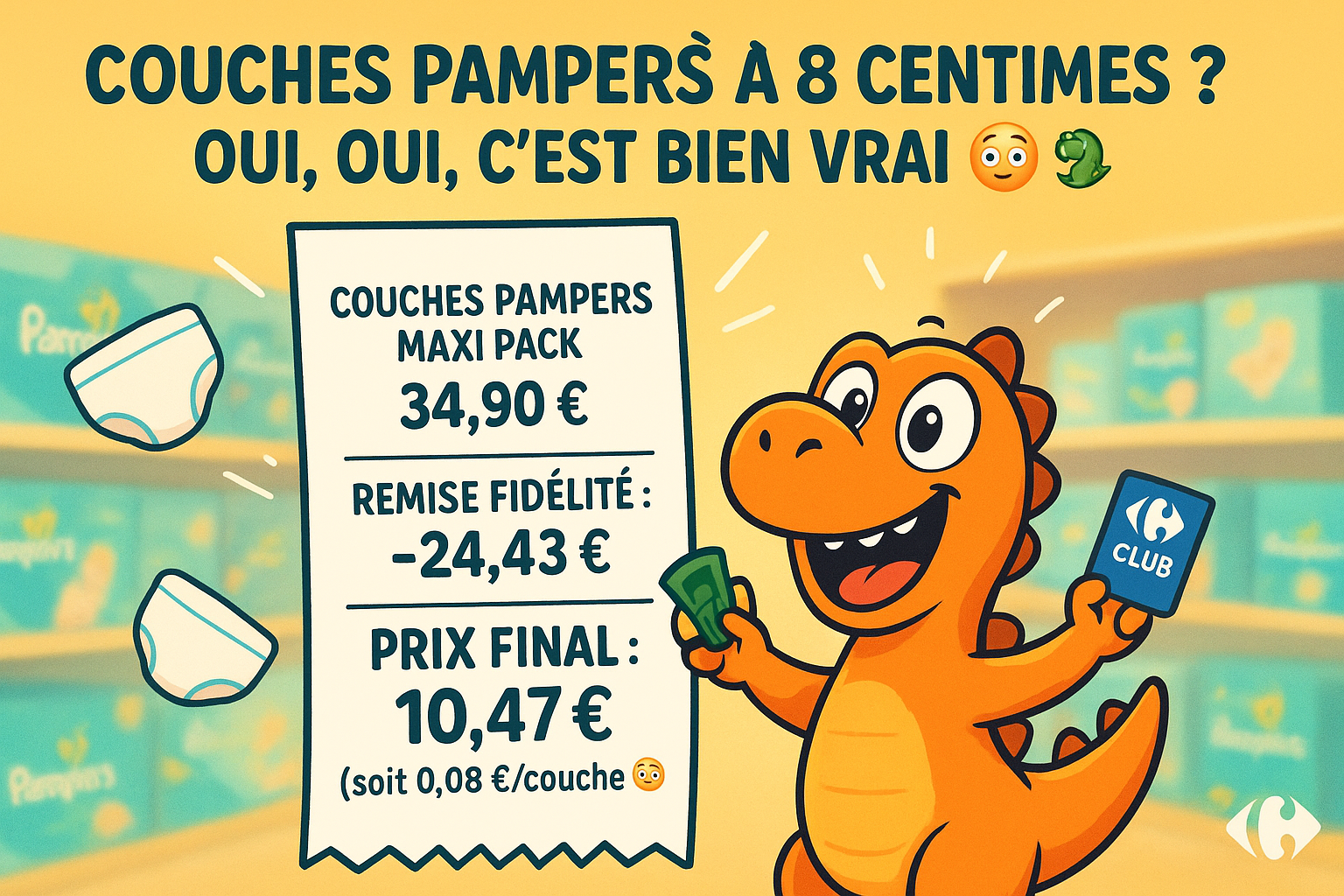 Par Radinosaure|2025-10-25T12:04:52+02:0025 octobre 2025|Mots-clés : bébé, bon plan, bons plans courses, Carrefour, couches, courses pas chères, économies, fidélité, Pampers, parents, promo, radin, Radinosaure|